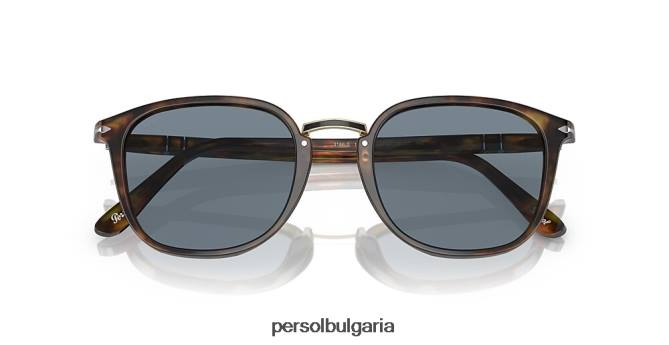 нов стил слънце със съвременен дизайн на рамката току-що се присъедини към семейството на persol. комбинацията от челен ацетат и метален мост, обогатен с полирани детайли, прави тази рамка уникална, докато системата meflecto осигурява максимален комфорт.